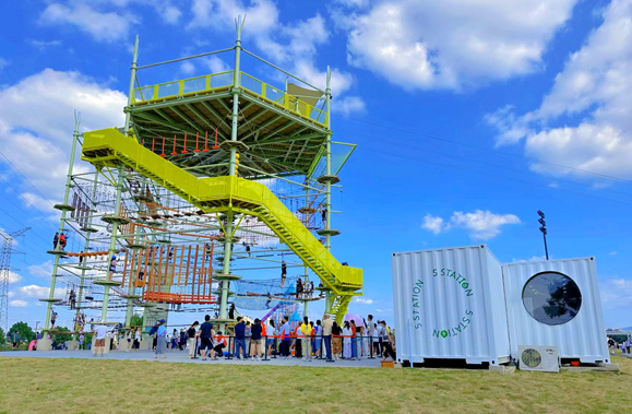 寧波滕頭5號空間站綜合探險水晶塔是一座集探險拓展與團(tuán)建運(yùn)動于一體的無動力游樂設(shè)備。以“青春活力的現(xiàn)代拓展休閑娛樂”為設(shè)計理念。它的存在,不僅豐富了當(dāng)?shù)氐奈膴蕛?nèi)容,還為游客帶來了休閑娛樂拓展運(yùn)動的好去處。