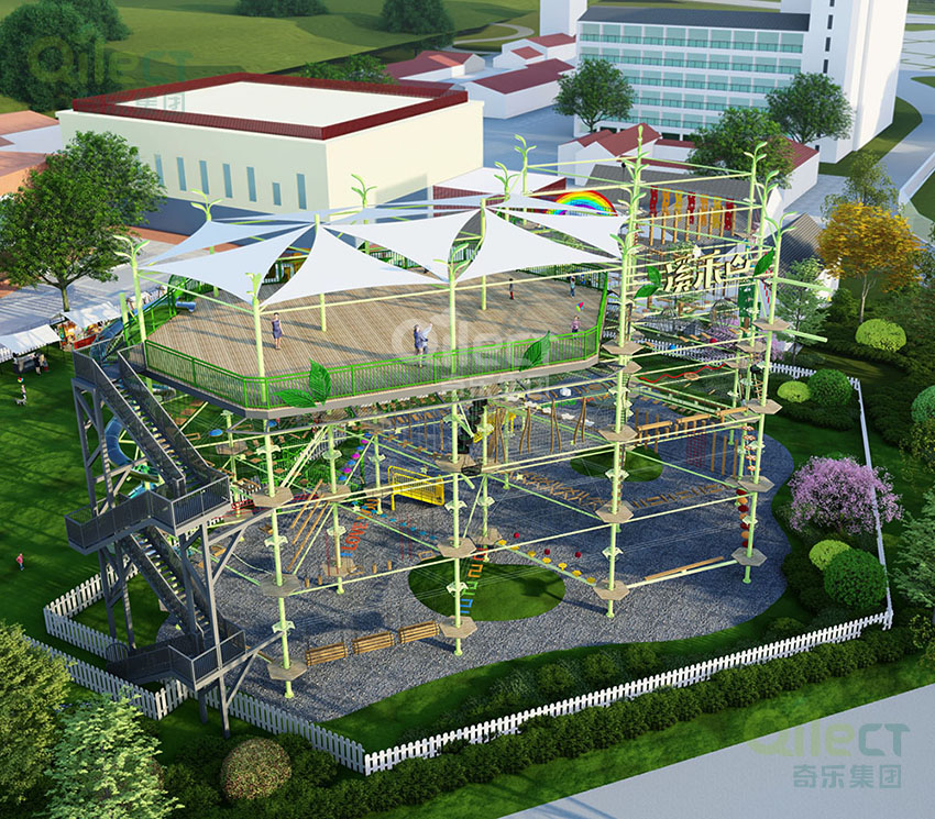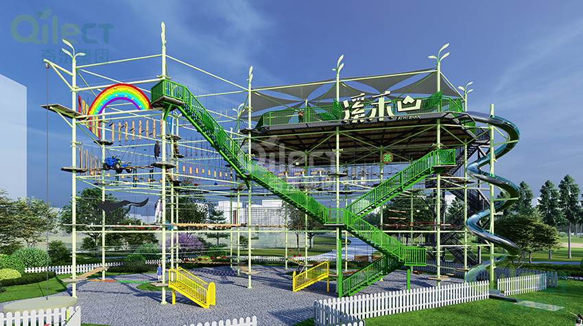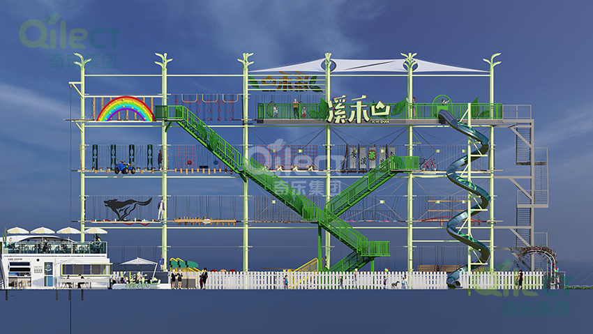 立體多層級挑戰系統:融合攀爬網、懸空步道、速降滑梯等多元模塊,滿足不同年齡段的探險需求;