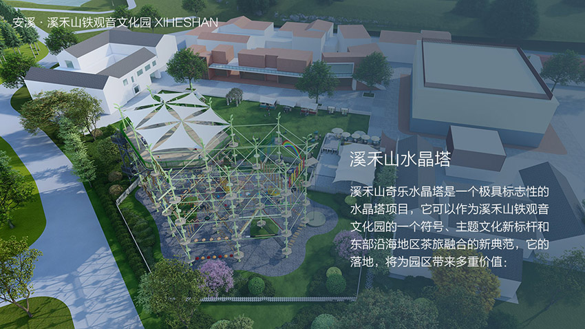 奇樂集團與七匹狼集團達成合作,為其旗下的安溪溪禾山鐵觀音文化園量身打造一座集拓展、美學與文化于一體的高空拓展水晶塔。