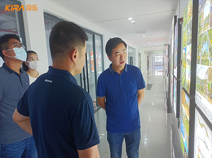 8月24日上午,東方佳園集團來賓代表到達奇樂集團科學城總部,在集團總裁易總的引導下,各位來賓先后參觀了奇樂集團文化墻、總部辦公區、研發設計部等重要場所,詳細介紹了奇樂集團在過去歲月中的發展歷程、企業宗旨以及未來展望,各位來賓充分肯定了奇樂集團在過去幾年當中所取得的一系列成績,并針對文化旅游項目的規劃發展提出了相關建議。