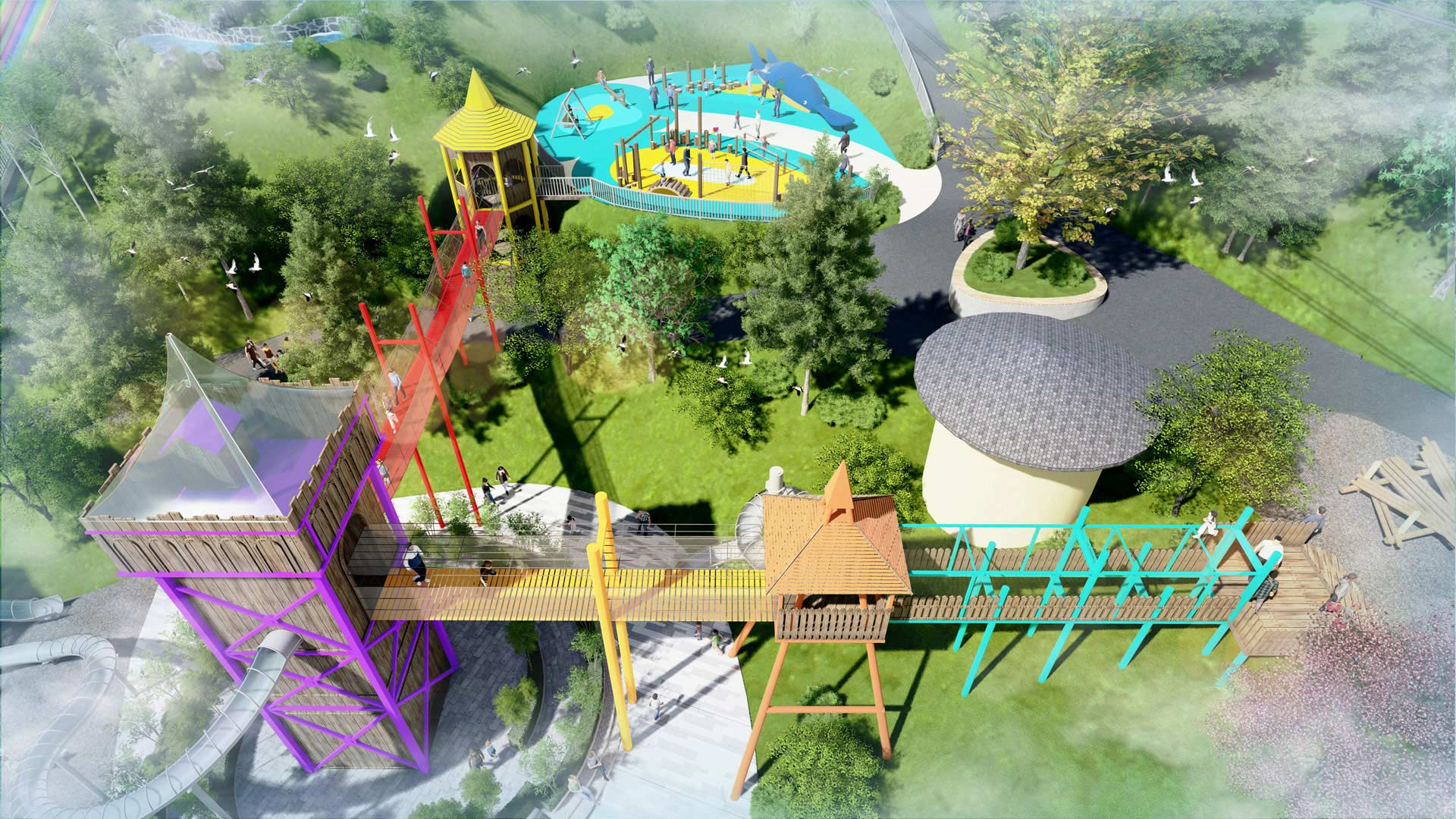云頂平臺除了為景區(qū)提供基礎配套設施以外,同時在項目空間布局方面充分兼顧了游樂體驗與觀光特色,打造令游客得到休閑放松與新潮體驗的多功能戶外娛樂平臺,多元化游樂空間動線融合智慧創(chuàng)新技術,將項目趣味性、挑戰(zhàn)性、娛樂性巧妙結合起來,讓玩家樂在其中,從而獲得更好的體驗。