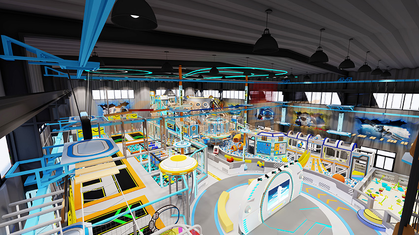 包含項目:自由蹦床、專業蹦床、蹦床灌籃、蜘蛛粘粘墻、海綿池對壘、彈跳迷宮、太空迷宮淘氣堡、凌空探險矩陣、彩虹繩網、創意攀巖、信仰之躍等(可根據實際場地大小定制)